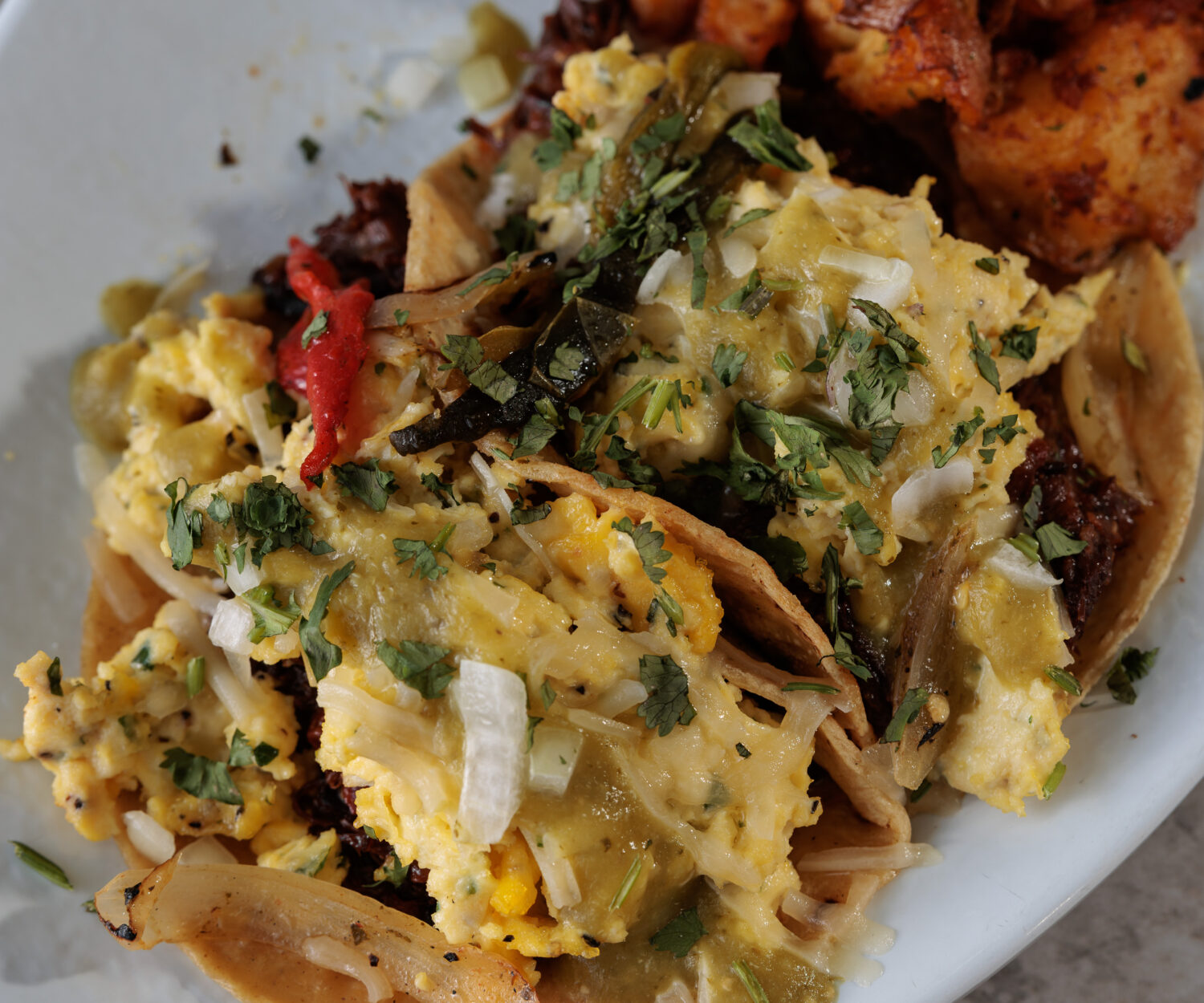 13 May 2025 Ultimate Breakfast Tacos Two Fresh Corn Tortillas, Machaca Braised Beef Short Rib, Herb Scrambled Eggs, Cilantro, Onion, Salsa Verde, Served with Smashed Potatoes adminmaverick
