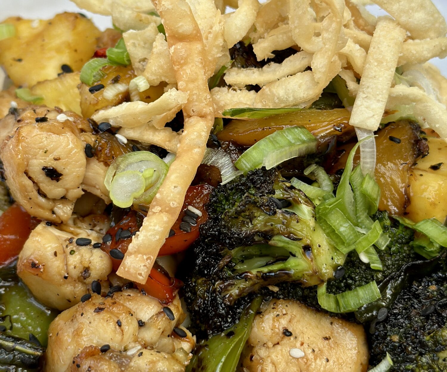 07 Sep 2022 Honey Teriyaki Chicken Bowl Honey Teriyaki Chicken, Citrus Rice, Grilled Veggies, Pineapple, Green Onion, Wonton Crisps, Sesame Seeds admin